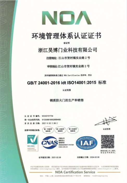 公司一直以來嚴格執(zhí)行ISO9001質量體系和ISO14001環(huán)境管理體系標準,建立了完備的科研、開發(fā)、生產、銷售服務體系。公司是浙江省門業協會會員單位,江山門業協會理事單位,中國木材與木制品流通協會會員單位,江山市消防協會副會長單位。